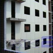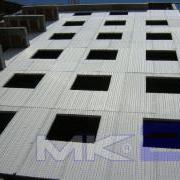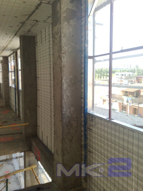 La fachada MK2 se completa “in situ” con la aplicación mediante gunitado por vía húmeda, de un espesor de 30 mm en cada cara de micro hormigón con una resistencia a la compresión mínima de 16 MPa sobre la que se podrá aplicar monocapa, mortero acrílico o simplemente pintura.