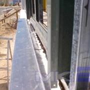 El panel MK2 es sujetado mediante ataduras a la perfilería para posteriormente gunitar sobre el mismo dejando parcialmente inmersos los perfiles en el micro hormigón.