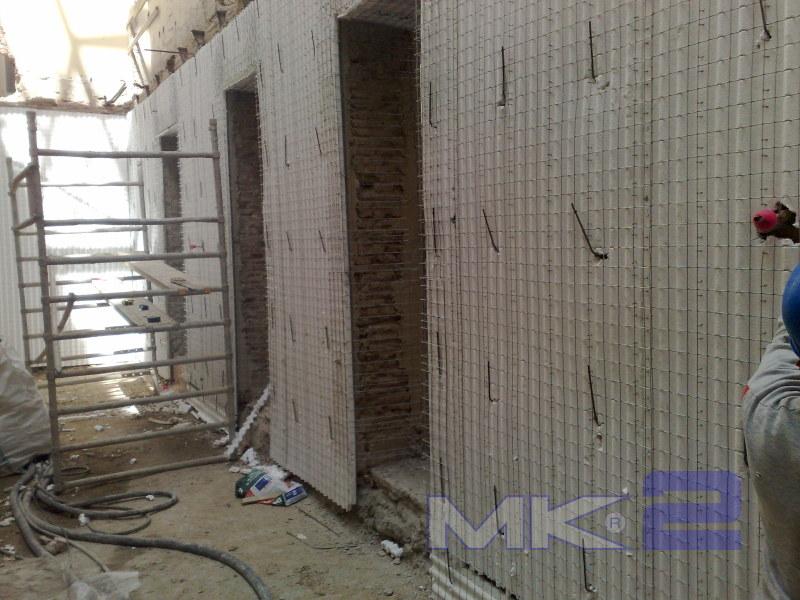 El gunitado de micro hormigón MK2 en combinación con el empleo de los paneles de trasdosado vinculados a muros de carga antiguos, permite ampliar las posibilidades de carga a valores practicamente ilimitados.
