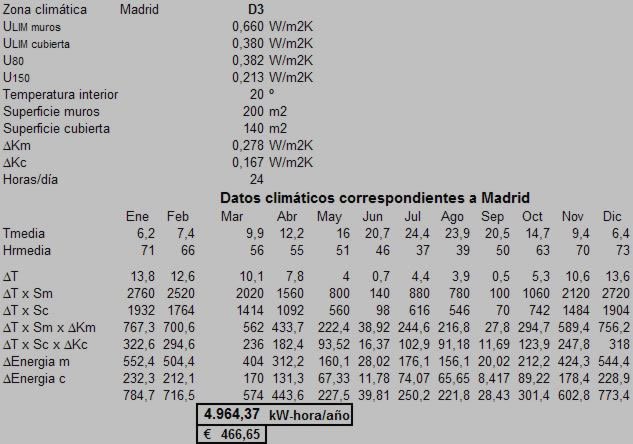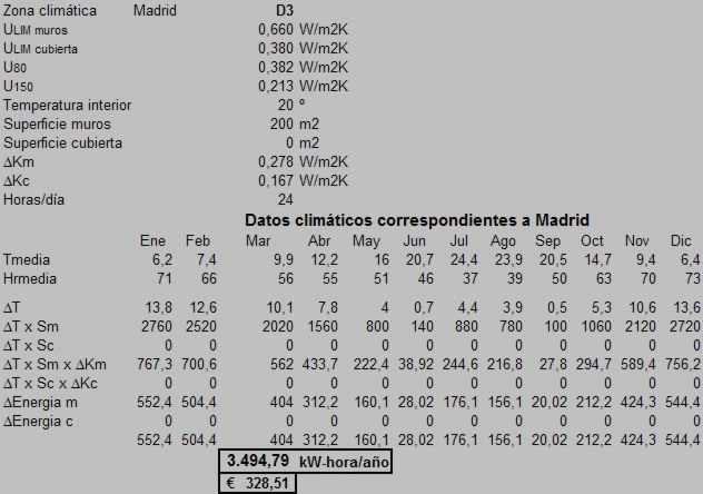 El empleo de la fachada MK2 produce un ahorro energético que se traduce en un ahorro monetario de gran importancia. Para calcular éste ahorro consideremos como ejemplo una vivienda unifamiliar en Madrid de una superficie construida de 240 m2 con una superficie de fachada de 200 m2 descontando las ventanas y puertas.