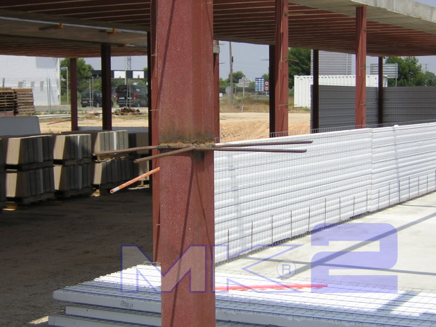 La fachada MK2 se ancla de los elementos que conforman la estructura ya sean estos de acero o de hormigón. En el primer caso las esperas se sueldan a los elementos metálicos.