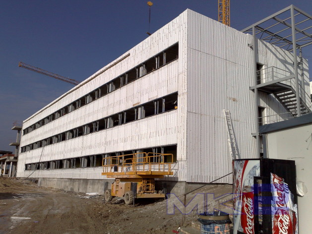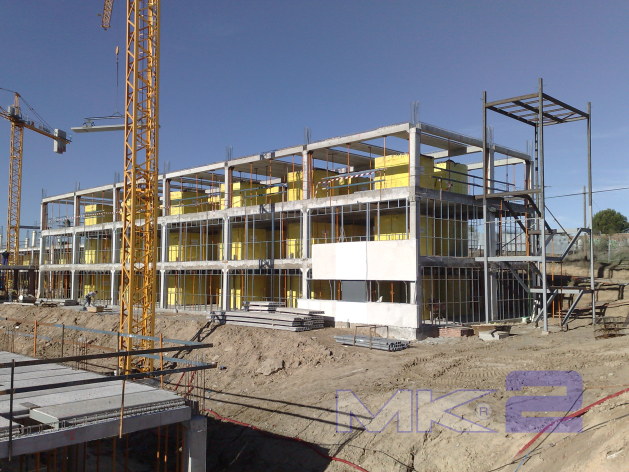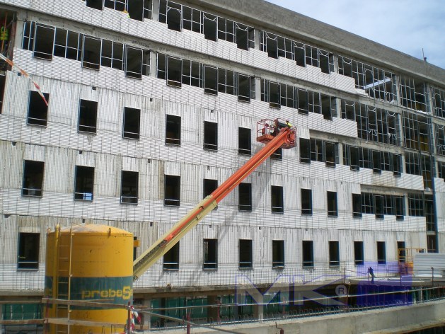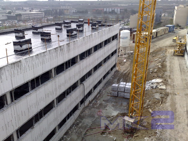 Puede apreciarse en las imágenes, la fijación del panel MK2 a los elementos estructurales del edificio, mediante barras corrugadas clavadas a cantos de forjado y pilares. Su diámetro y separación se calculan en función de las acciones a soportar tanto de peso propio como de viento o sismo.