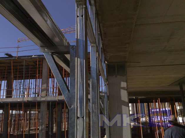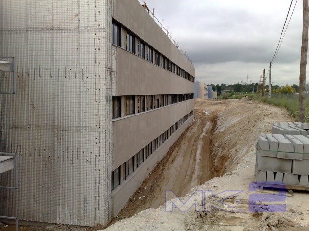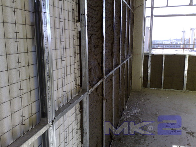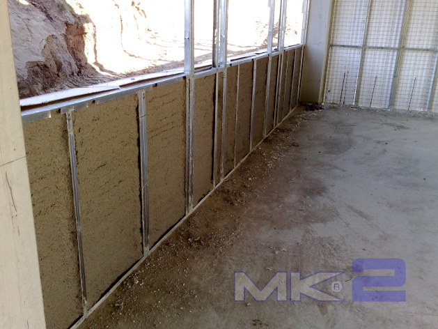 La primera fase de la tarea consiste en la colocación de la estructura de perfiles para sujeción de las placas de cartón-yeso sobre la que se montarán los paneles de fachada MK2.